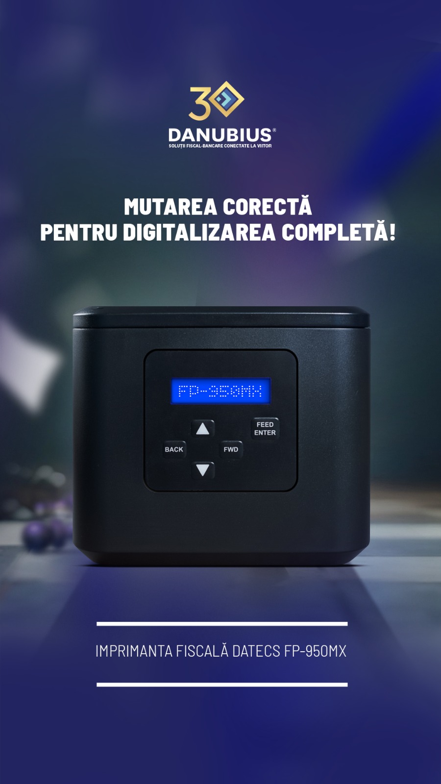 Danubius Exim, lider în aparatură fiscală și tehnologii de plată în România, lansează FP950MX, imprimanta fiscală inteligentă, concepută integral in-house, care comunică cu sistemele Agenției Naționale de Administrare Fiscală și digitalizează complet procesul fiscal al comercianților din industriile de retail și HoReCa. Noul produs întărește statutul Danubius Exim de pionier în industria fiscală și deschide un nou capitol în retailul digitalizat, în care companiile beneficiază de un aliat paperless și complet automatizat, ce reduce la maximum riscul de eroare umană.