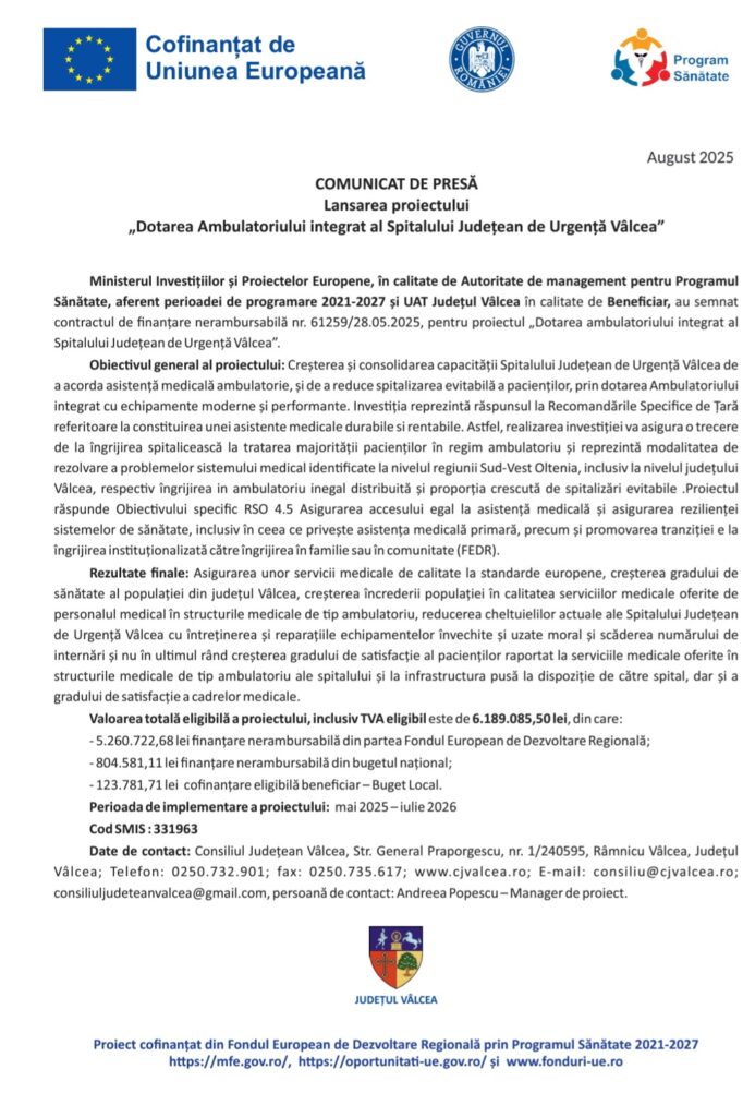 „Dotarea Ambulatoriului integrat al Spitalului Județean de Urgență Vâlcea”Actualitate„Dotarea Ambulatoriului integrat al Spitalului Județean de Urgență Vâlcea”FacebookTwitterPinterestWhatsApp By gzbAugust 7, 2025Citeste si...ANRE, despre oprirea gazelor. Ce condiții trebuie să îndeplinească firmele care intervin în astfel de situații October 31, 2025 Șeful armatei ucrainene recunoaște „situația dificilă” în care a ajuns fortăreața strategică Pokrovsk. Cel mai nou ordin pe care l-a dat comandanților din prima... October 31, 2025 Reacția lui Donald Trump, în Air Force One, când a fost întrebat de reducerea forțelor americane din România October 31, 2025 FacebookTwitterPinterestWhatsApp Etichete:ANRE, despre oprirea gazelor. Ce condiții trebuie să îndeplinească firmele care intervin în astfel de situații October 31, 2025 Șeful armatei ucrainene recunoaște „situația dificilă” în care a ajuns fortăreața strategică Pokrovsk. Cel mai nou ordin pe care l-a dat comandanților din prima... October 31, 2025 Reacția lui Donald Trump, în Air Force One, când a fost întrebat de reducerea forțelor americane din România October 31, 2025 România adaugă o nouă escadrilă F-16 pentru apărarea spațiului aerian pe Flancul estic NATO October 31, 2025 Facturile la electricitate cresc din nou de la 1 noiembrie. Este a patra scumpire din ultimele luni / Cât vom plăti în plus și... October 31, 2025 Opoziție în Congresul SUA față de retragerea trupelor americane: „România a fost un aliat puternic/ Decizia transmite un semnal greșit pentru Rusia” October 31, 2025 Cele mai populare articoleANRE, despre oprirea gazelor. Ce condiții trebuie să îndeplinească firmele care intervin în astfel de situațiiȘeful armatei ucrainene recunoaște „situația dificilă” în care a ajuns fortăreața strategică Pokrovsk. Cel mai nou ordin pe care l-a dat comandanților din prima...Reacția lui Donald Trump, în Air Force One, când a fost întrebat de reducerea forțelor americane din RomâniaRomânia adaugă o nouă escadrilă F-16 pentru apărarea spațiului aerian pe Flancul estic NATOFacturile la electricitate cresc din nou de la 1 noiembrie. Este a patra scumpire din ultimele luni / Cât vom plăti în plus și...Opoziție în Congresul SUA față de retragerea trupelor americane: „România a fost un aliat puternic/ Decizia transmite un semnal greșit pentru Rusia”Poziția Berlinului după ce SUA și-au retras o parte din soldații din România. Ce au spus oficialii guvernului german, când au fost luați la...Primele persoane reținute de procurori în dosarul exploziei din blocul din Rahova