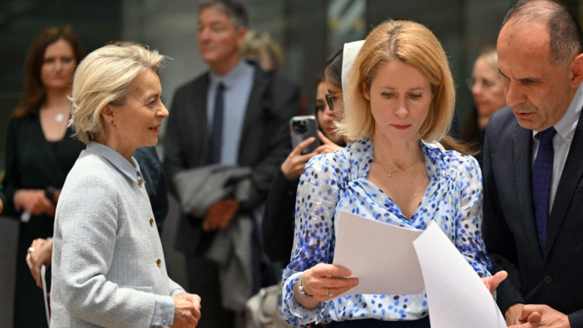 Italia şi Spania au precizat luni, la reuniunea miniştrilor europeni de Externe desfăşurată la Bruxelles, că nu sunt pregătite să susţină o propunere a şefei diplomaţiei UE, Kaja Kallas (foto, centru), de a angaja până la 40 de miliarde de euro ca ajutor militar european pentru Ucraina în acest an, relatează Reuters.