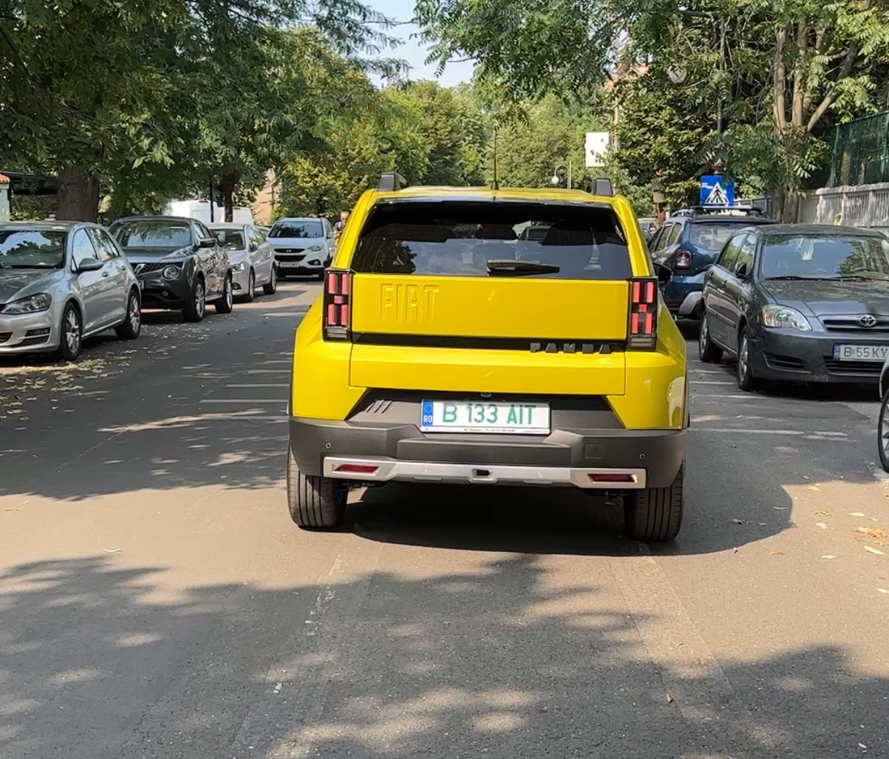 Pe șosea, Panda se simte sigură și surprinzător de stabilă pentru înălțimea ei. Direcția e ușor artificială, dar precisă, iar suspensia absoarbe decent gropile, fără să-ți dea senzația de „plutire”. Cuplul instant al motorului electric face ca mașina să pară mai sprintenă decât cifrele din fișa tehnică. Într-un București plin de frânări bruște, treceri de pietoni spontane și scutere sinucigașe, Panda electrică se mișcă natural, ca o extensie a ta.
