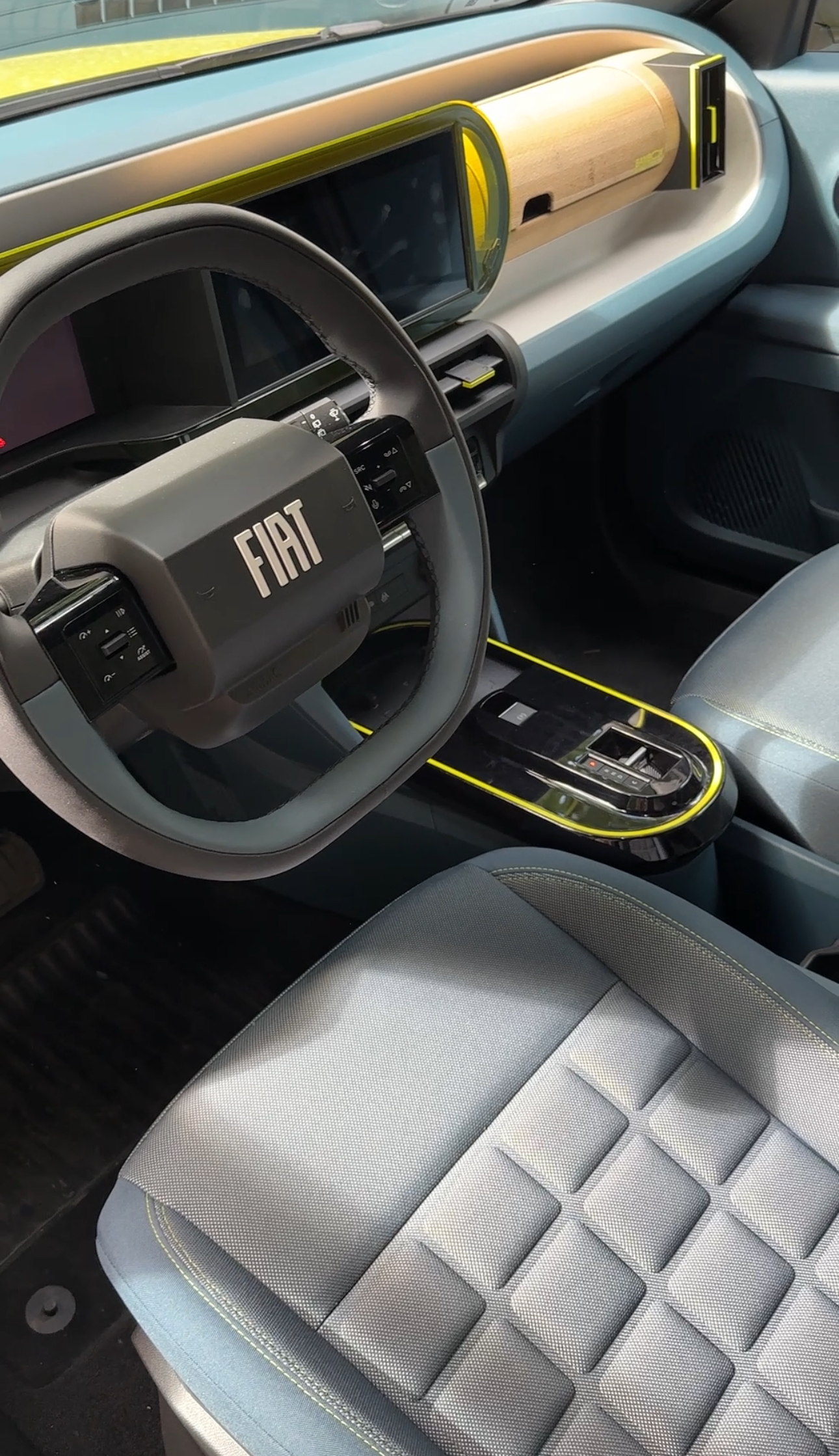 Odată urcat la volan, nu te izbește luxul — dar nici nu simți nevoia lui. Plasticul dur e prezent, da, dar montajul e solid și totul are un aer coerent, curat. Detalii ca torpedoul cu inserții din bambus și materialele reciclate din planșa de bord sugerează că Fiat a vrut să păstreze caracterul „popular” al Panda, dar cu o conștiință ecologică actualizată.