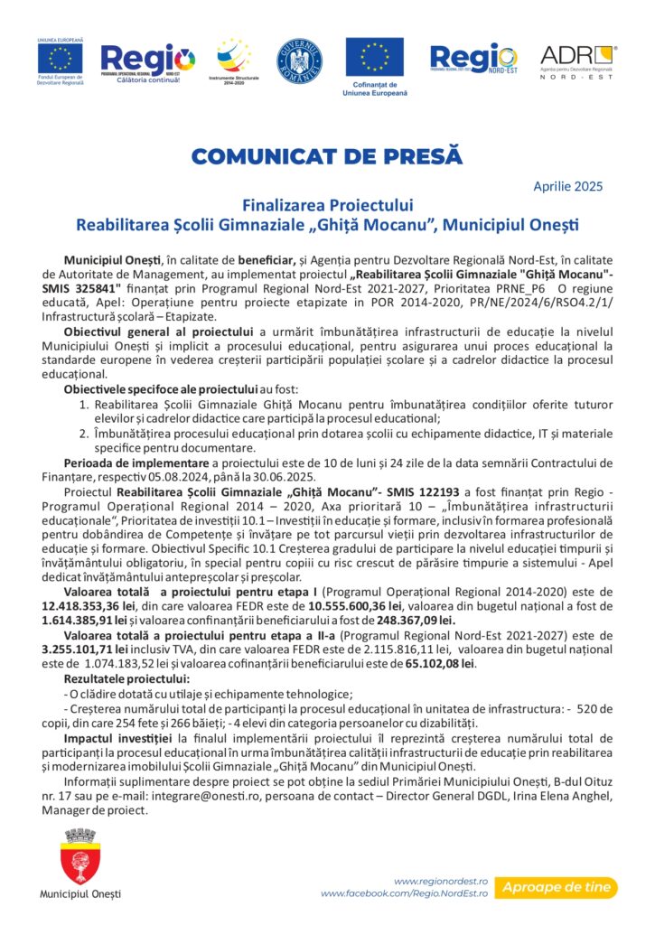 Finalizarea Proiectului Reabilitarea Școlii Gimnaziale „Ghiță Mocanu”, Municipiul OneștiActualitateFinalizarea Proiectului Reabilitarea Școlii Gimnaziale „Ghiță Mocanu”, Municipiul OneștiFacebookTwitterPinterestWhatsApp By gzbApril 7, 2025Citeste si...Vizită secretă a directorului CIA în Polonia. Se știe care este punctul vulnerabil într-un război cu Rusia January 25, 2026 Casa Albă insistă că SUA au făcut pentru NATO mai mult decât orice altă ţară January 25, 2026 Cele mai mari două orașe ucrainene, atacate de ruși după negocierile din Abu Dhabi January 25, 2026 FacebookTwitterPinterestWhatsApp Etichete:Vizită secretă a directorului CIA în Polonia. Se știe care este punctul vulnerabil într-un război cu Rusia January 25, 2026 Casa Albă insistă că SUA au făcut pentru NATO mai mult decât orice altă ţară January 25, 2026 Cele mai mari două orașe ucrainene, atacate de ruși după negocierile din Abu Dhabi January 25, 2026 SUA a dotat distrugătorul de ultimă generație de 4.600.000.000$ cu rachete hipersonice. Ce arme letale mai are January 25, 2026 Negocieri, Abu Dhabi. Putin cere ce i-a promis Trump în Alaska, retragerea Ucrainei din Donbas. Ce oferă? January 25, 2026 Nicușor Dan, nouă gafă de Ziua Micii Uniri la Focșani January 25, 2026 Cele mai populare articoleVizită secretă a directorului CIA în Polonia. Se știe care este punctul vulnerabil într-un război cu RusiaCasa Albă insistă că SUA au făcut pentru NATO mai mult decât orice altă ţarăCele mai mari două orașe ucrainene, atacate de ruși după negocierile din Abu DhabiSUA a dotat distrugătorul de ultimă generație de 4.600.000.000$ cu rachete hipersonice. Ce arme letale mai areNegocieri, Abu Dhabi. Putin cere ce i-a promis Trump în Alaska, retragerea Ucrainei din Donbas. Ce oferă?Nicușor Dan, nouă gafă de Ziua Micii Uniri la FocșaniIncendiu puternic pe strada Garoafei din Sectorul 5. Case și anexe gospodărești, mistuite de flăcăriPrognoza meteo, 24 ianuarie. Weekend cu temperaturi mai ridicate față de cele specifice. Unde va ploua