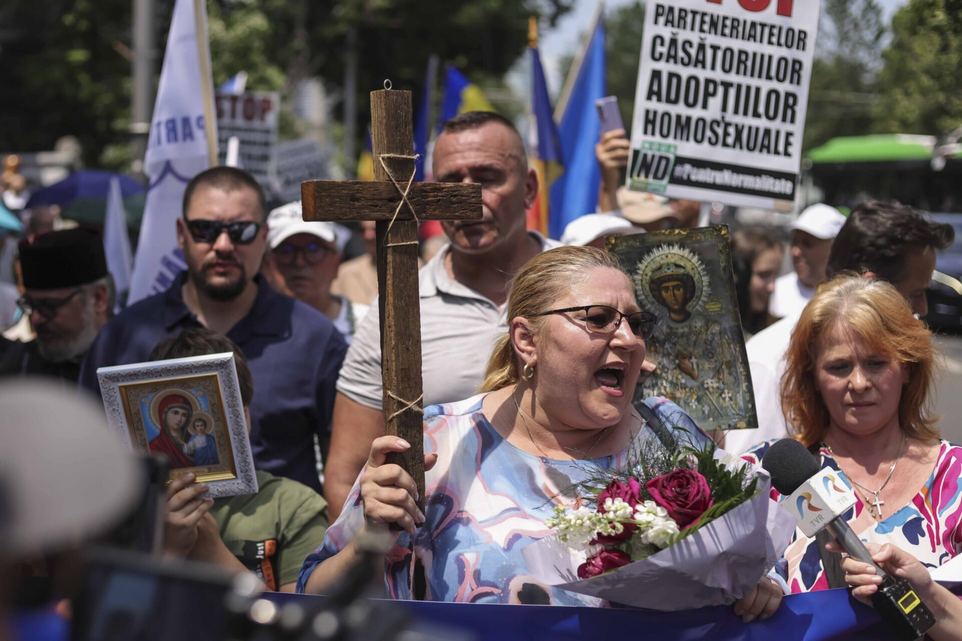 Astfel de poziții au fost vizibile în aceeași zi, în paralel, la „Marșul normalității”, care susține familia formată dintre un bărbat și o femeie, unde au fost afișate icoane și mesaje religioase împotriva Pride-ului.