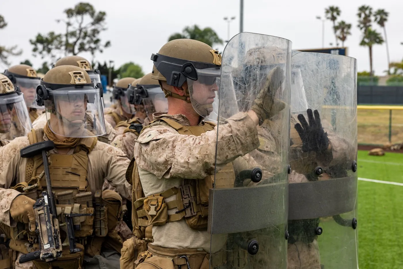 Marți, un post local afiliat CNN a surprins imagini cu pușcașii marini în timpul antrenamentului, în care aceștia păreau să exerseze reținerea persoanelor.