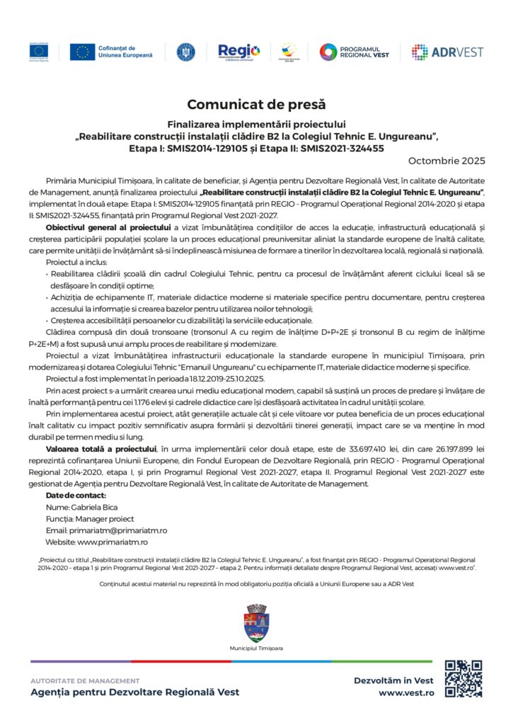 Reabilitare construcții instalații clădire B2 la Colegiul Tehnic E. UngureanuActualitateReabilitare construcții instalații clădire B2 la Colegiul Tehnic E. UngureanuFacebookTwitterPinterestWhatsApp By gzbOctober 8, 2025Citeste si...Zelenski îi răspunde tranșant lui Trump: „Ucraina nu este obstacolul în calea păcii” January 17, 2026 Putin crede că „disputa Groenlanda” e un motiv ca NATO să trimită trupe în Arctica. Își consolidează pozițiile January 17, 2026 Rusia recrutează localnici pentru atacuri cu drone în porturile Mării Negre. Ucraina a împiedica unul la Odesa January 17, 2026 FacebookTwitterPinterestWhatsApp Etichete:Zelenski îi răspunde tranșant lui Trump: „Ucraina nu este obstacolul în calea păcii” January 17, 2026 Putin crede că „disputa Groenlanda” e un motiv ca NATO să trimită trupe în Arctica. Își consolidează pozițiile January 17, 2026 Rusia recrutează localnici pentru atacuri cu drone în porturile Mării Negre. Ucraina a împiedica unul la Odesa January 17, 2026 Polonia insistă să primească despăgubiri de la Rusia pentru atrocitățile comise de Moscova în perioada comunistă January 17, 2026 Politico: „E timpul să renunțăm la Trump?”. UE analizează represalii fără precedent pentru a salva Groenlanda January 17, 2026 România și Polonia, țările din UE cu cea mai mare încredere în capacitatea SUA de a conduce lumea January 17, 2026 Cele mai populare articoleZelenski îi răspunde tranșant lui Trump: „Ucraina nu este obstacolul în calea păcii”Putin crede că „disputa Groenlanda” e un motiv ca NATO să trimită trupe în Arctica. Își consolidează pozițiileRusia recrutează localnici pentru atacuri cu drone în porturile Mării Negre. Ucraina a împiedica unul la OdesaPolonia insistă să primească despăgubiri de la Rusia pentru atrocitățile comise de Moscova în perioada comunistăPolitico: „E timpul să renunțăm la Trump?”. UE analizează represalii fără precedent pentru a salva GroenlandaRomânia și Polonia, țările din UE cu cea mai mare încredere în capacitatea SUA de a conduce lumeaNu scăpăm de ger nici în februarie. Prognoza meteo pe termen lung16.68.000.000 € pentru România. Primul val SAFE de finanţare a apărării europene a fost aprobat de Bruxelles