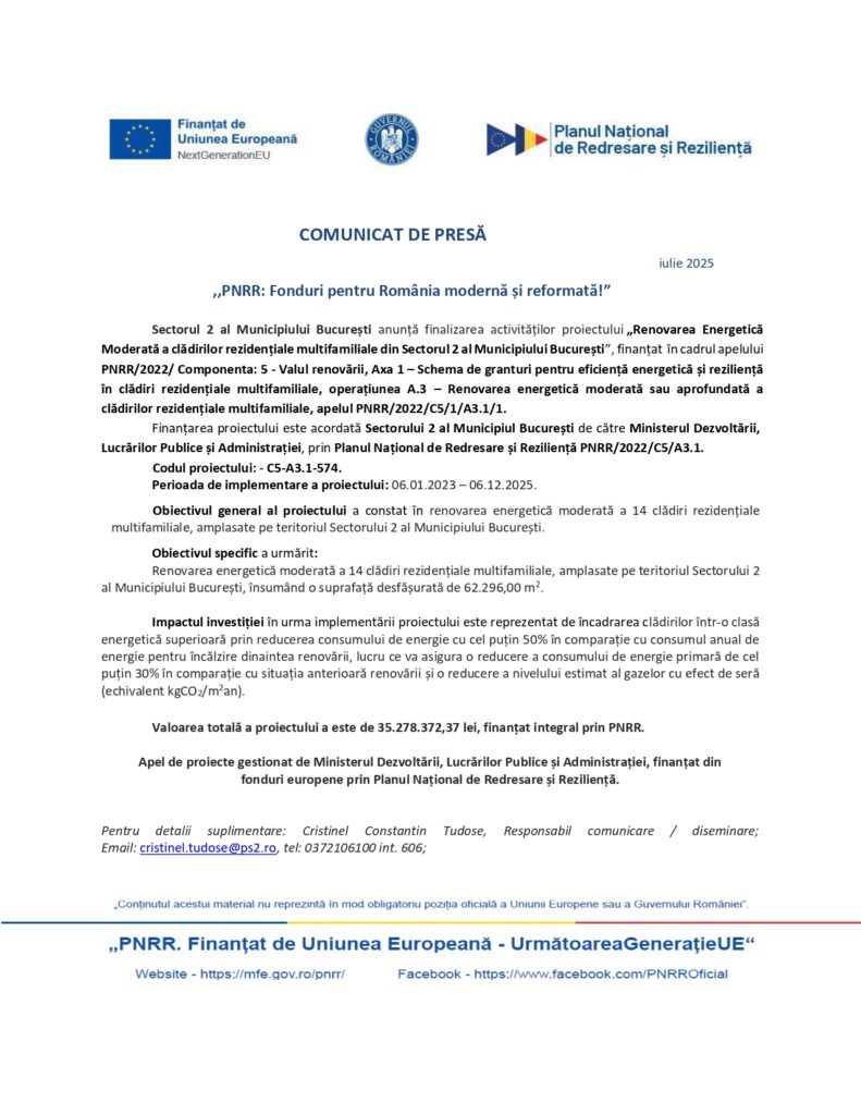ActualitateRenovarea Energetică Moderată a clădirilor rezidențiale multifamiliale din Sectorul 2 al Municipiului București